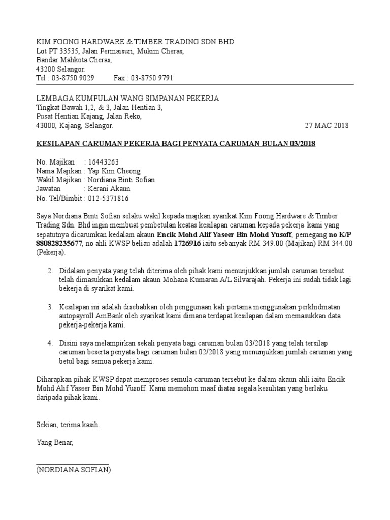 Contoh Surat Kesilapan Caruman Kwsp Beixsteer